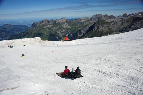 我在 Glacier Park 也初嘗一種小滑板車下坡滋味,比想像中快,不過容易操作,未有失誤,貪玩的我若不是有太多活動要拍攝,應該不願離開這雪地樂園。此刻有點後悔,沒有堅持叫幾位朋友前來玩雪,不過,兩星期前的雪坡,狀態不太理想,因為今年瑞士的夏天實在太熱,山上的雪都融化得很利害,只是我有運氣,今天到訪前一晚,下過一場雪。我記得,不久前聽到一對港人夫婦說:這跟我們幾年前真有差別,以前山頂都鋪滿雪呀。