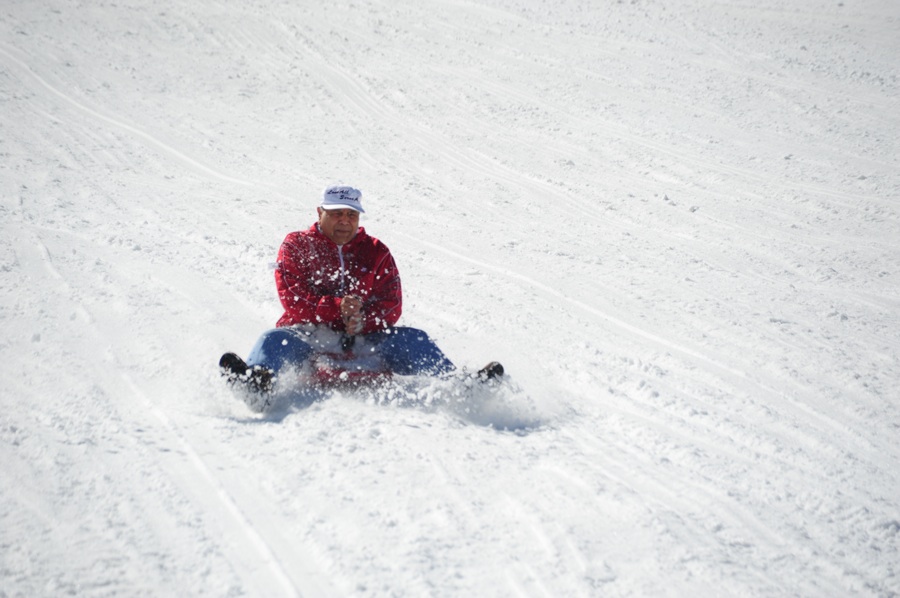 終於,我們到達 Glacier Park,遠處已聽見笑聲。我站在大家拿滑板及玩具的地方站了良久,對,我是在觀察什麼玩意跟什麼人在玩,出奇地,數目最多的是來自印度,他們應該是團體,都四五人一夥地玩得好開心。而且把其中一種可串連的 snake (暫稱蛇板),翻來翻去,正享受着四人一排衝下雪坡。我只是旁觀者也哈哈大笑,當中更有對男女玩蛇板,在下坡的最尾竟然不減慢,直衝上「U形」山坡的另一端,不小心「卡」在繩欄上,尷尬了一陣子,而全場都注視着,失笑着,忍笑着。這一幕,我覺得絕對是笑笑小電影題材。