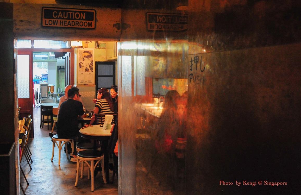 由於我平時出差對食兩餐亦冇咩要求….所以記憶一般來自道路、建築物,作為地圖。但今次則有兩間餐廳,我覺得頗有趣,印象深刻,可成為心目中的搵食地標,都集中於中峇魯區(Tiong Bahru)—在Moh Chuan Street 的 Moh Guan Terrace,是新加坡在1939-40年代興建的公屋,當年來說,計劃相當震撼,也許是首批大型獨立屋款式的公屋,而且某些樓層下,設有防空洞(purpose-built air raid shelter)。Moh Guan Terrace 78號正是其中一個地下防空洞入口,在街舖的華美餐室,則由1940年起已存在,並是獅城現存的小數舊式咖啡店中,用牛油來沖咖啡。直至2013年,BINCHO在這餐室的「後舖」,開設日式烤雞店,如日式居酒屋,舖的大後方是酒吧,用鋼鑄及銅色的裝飾為主,一種很Raw的味道浸透出來。而一般在日本的燒雞店,是串著雞肉於在鐵板上燒,但新加坡版本的則沒有用串的方法,主廚Asai san來自大阪,親自主理。我探訪當天是星期天的下午,BINCHO在周末設有午市,但整個menu幾乎都是雞,我以為可避開雞肉,就選了豬肉飯,超正,是厚切的醬燒腩肉,有層次有口感,很夠日本拉麵的五花腩肉滋味,肉汁是噴出來的。可是,還冷不防地被那看不出是炸雞皮的前菜玩弄了,吃畢數件才知真相,心寒了幾小時。來來回回地傷心了一下子(下次我帶朋友來的話,會告訴他們,我齋飲OK了…)